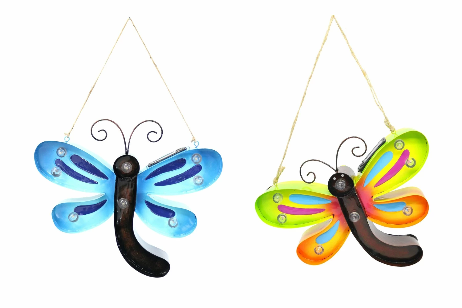These hanging dragonfly solar decorations feature marquee style lights which make the charming designs pop at night. Solar panel provide up to 8 hours of power on a full charge.