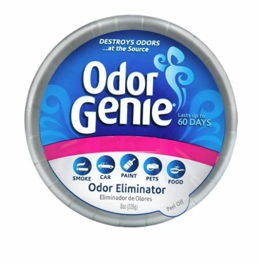 - Odor Genie effectively eliminates odors associated with smoke, kitchen, food, bathroom, trash, diapers, paint, solvent, gasoline, pets and more