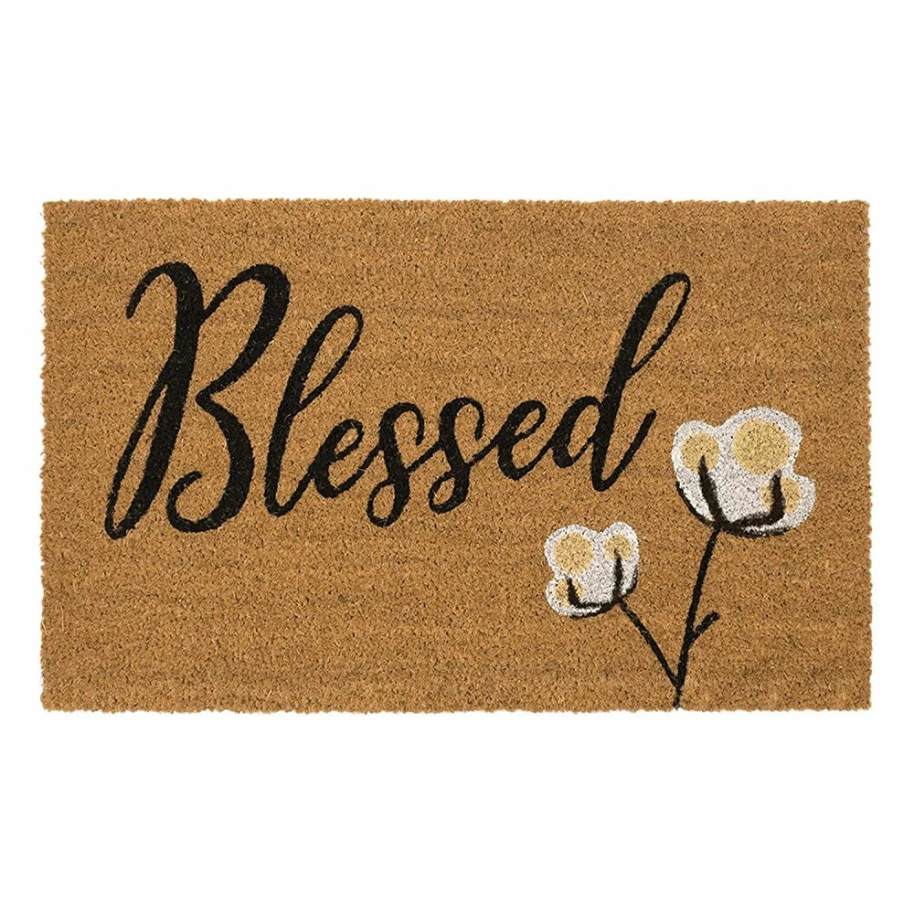 This entryway door mat is made of sustainable and renewable all natural coconut fiber and backed with vinyl for durability. The design is hand finished using permanent dyes for long lasting beauty.