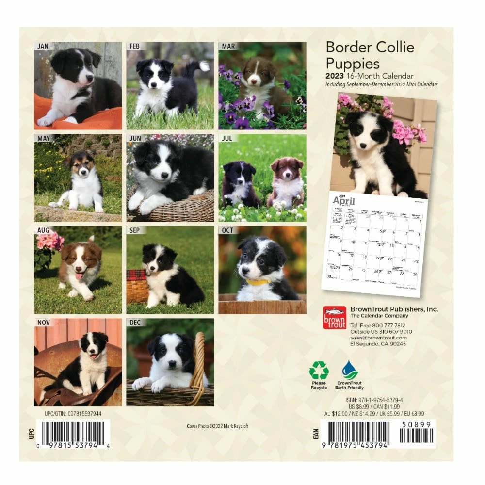 Brown Trout Border Collie Puppies 2023 Mini 7×7 Calendar – Calendars