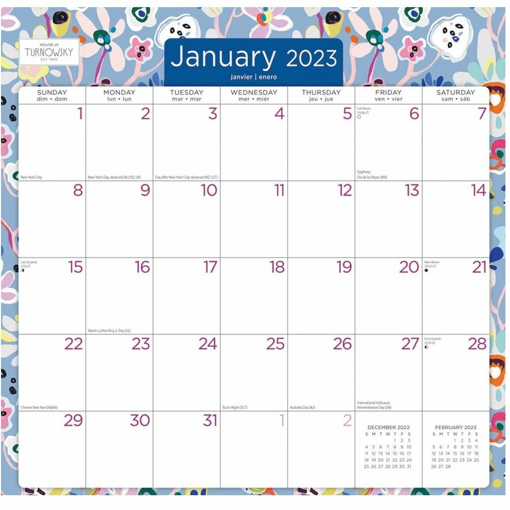 House of Turnowsky’s beautiful patterns adorn this square office calendar, evoking a sense of ethereal tranquility. The 12″ x 12″ format provides ample room for writing notes and appointments, with a wire-o binding to economize space and make for easy page flips, and features an original, elegant design that transports you to another time and place.