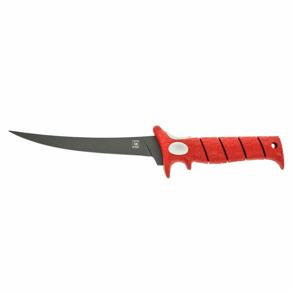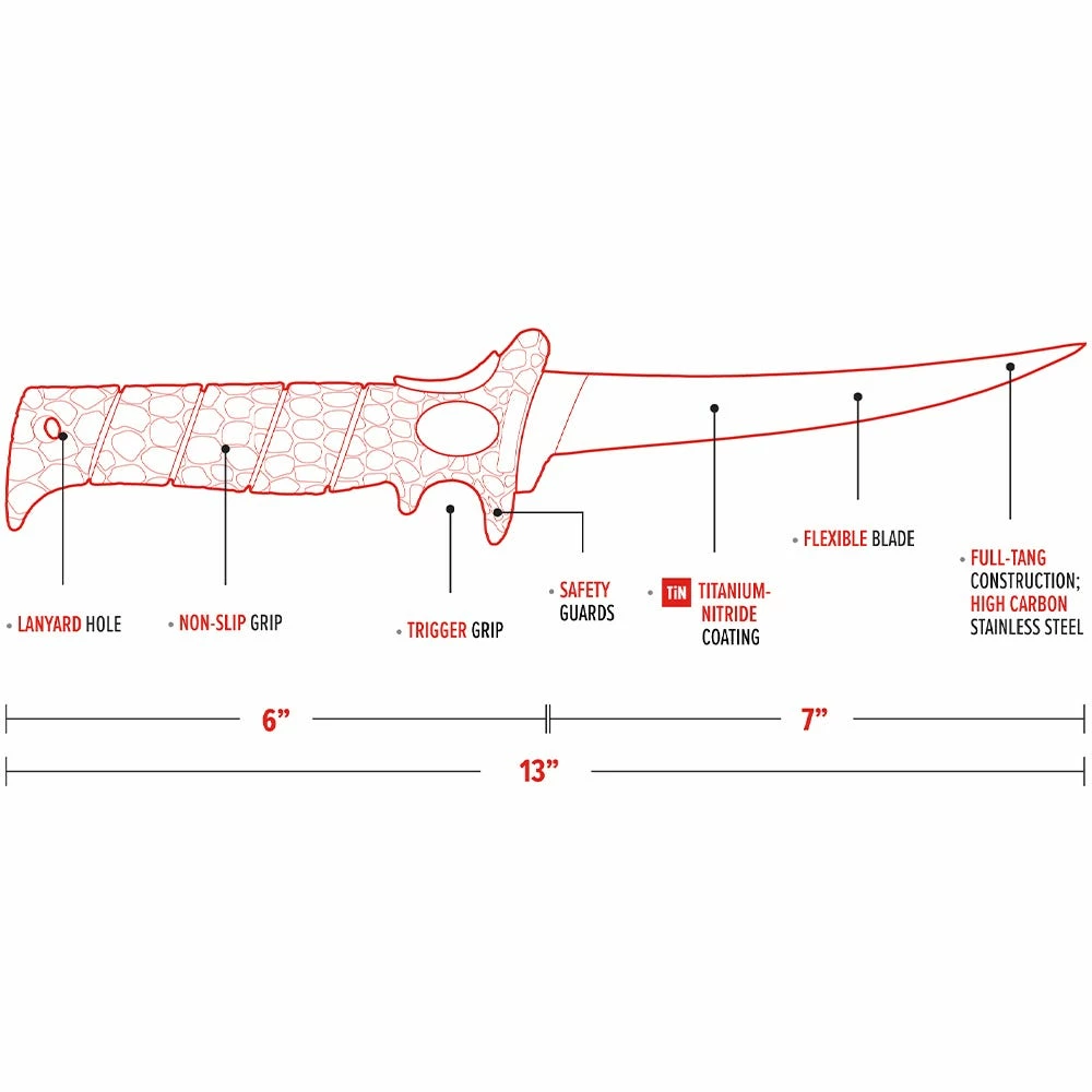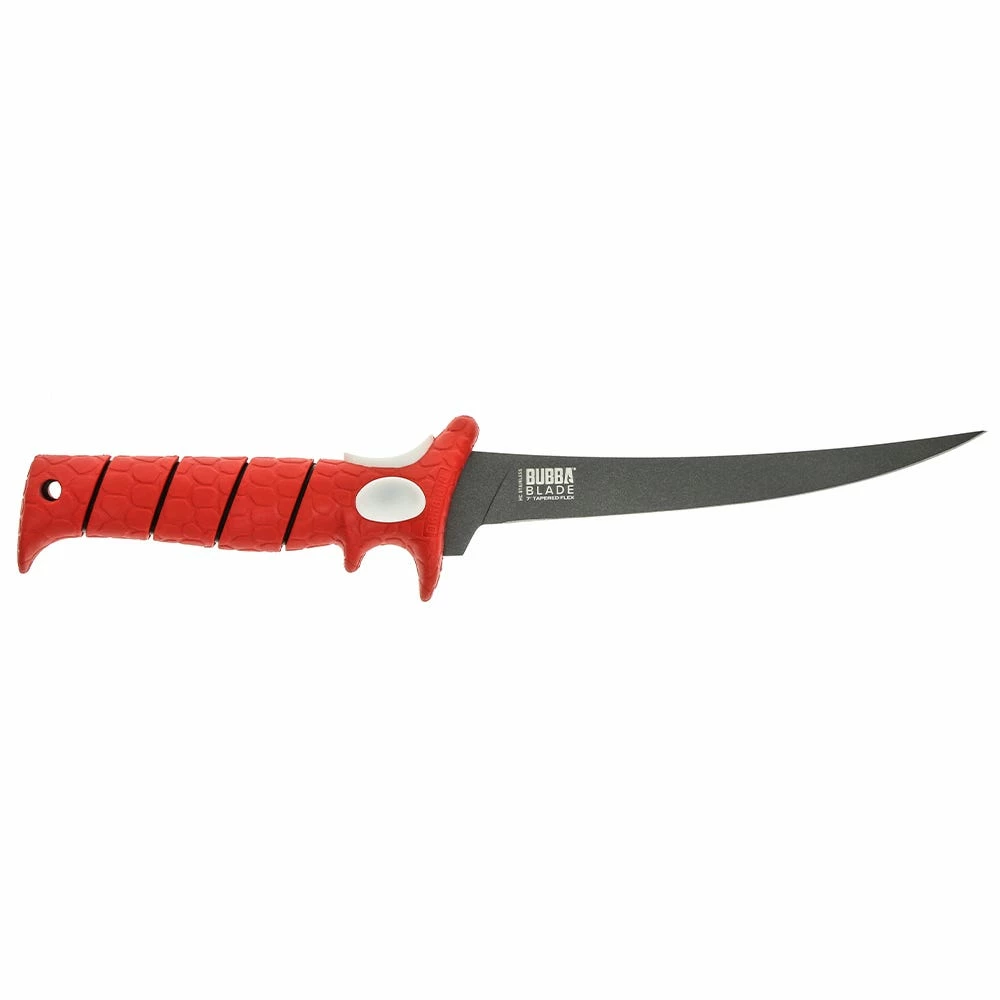 You asked for it and now it’s here! The 7 inch flex blade. Bubba Blade uses the same patented textured no slip grip handle, and stainless steel as the other Bubba Blades. The non-stick coated 7 inch blade makes filleting smaller pan fish & meat cutting even easier. Add this 7 inch blade to the 9 inch flex & 9 inch stiffe and have the perfect filleting & carving set of knives.