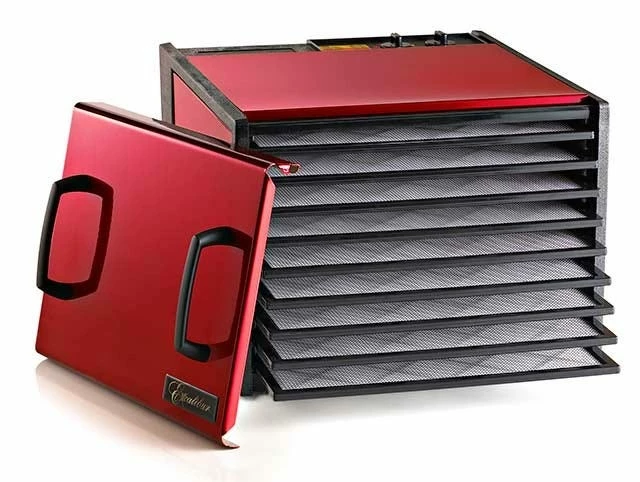 The long lasting beauty and modern appearance of this Excalibur dehydrator lends a touch of COLOR to your kitchen. The perfect combination of industry leading air-flow mechanics and materials. Ideal for families, hunters, crafts people, volume pet treats, in-home dehydrating businesses.