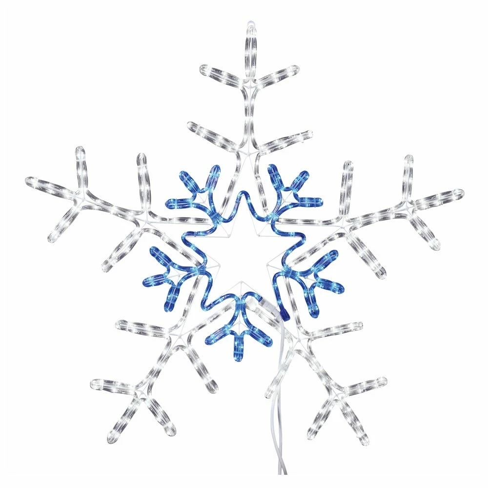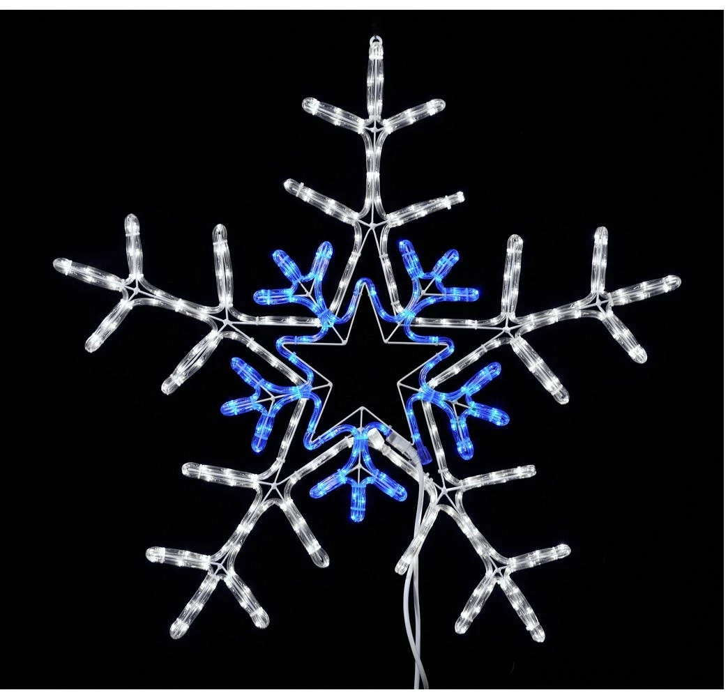 You can light up your holiday season with this beautiful blue and white snowflake! Perfect for decorating the yard for all the neighbors to see or perfect for adding some charm to the inside of your house. This snowflake features 324 blue and cool white LED lights in transparent PVC rope light. The metal frame is powder-coated to withstand constant weathering and resist rust over long periods of outdoor use, so you can enjoy the beauty all holiday long.