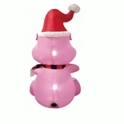 This inflatable pig is made of durable, weather-resistant polyester cloth. Decorate your home for Christmas with this adorable animal inflatable. It looks great day and night. Features a sitting Pig is wearing a Santa hat with a stripe scarf. It is internally led lighted for night time display. comes with metal stakes and tehter ropes to secure the item.
