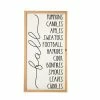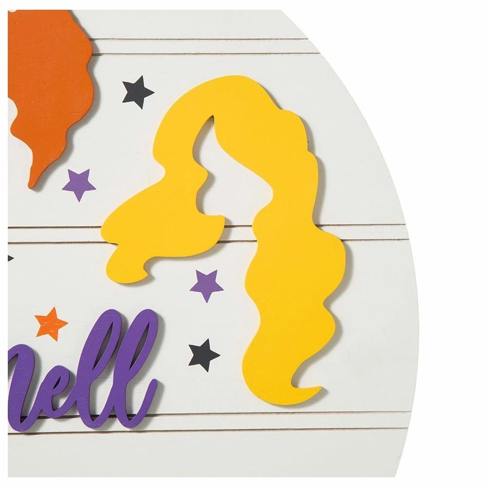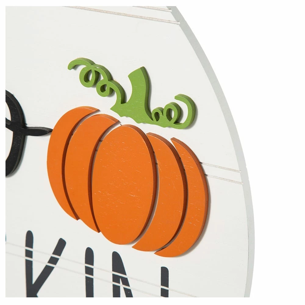 This sign measures 20″ in diameter and is 0.79″ thick, it features in double sides with two different designs. One side is for Halloween, with colorful printed stars, laminating hair and I Smell Wording. The rest patterns are high quality printed. The another side is for Harvest.