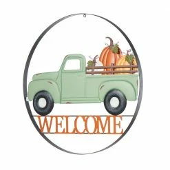 Decorate your home with this adorable pumpkin truck wall hanging. The wall decor is made of 100% metal, high quality painting.