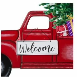 Metal Christmas truck yard stake adds a unique charm to your holiday decor, Perfect metal garden stake yard art.