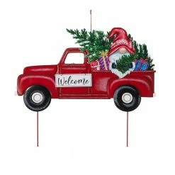 Metal Christmas truck yard stake adds a unique charm to your holiday decor, Perfect metal garden stake yard art.