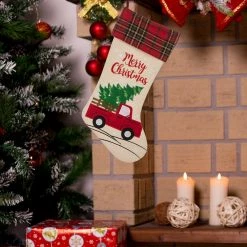 Embroidered Linen Christmas Red Truck Stocking – 1113203054