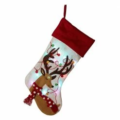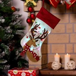 LED Reindeer Embroidered Linen Christmas Stocking – 1113203055