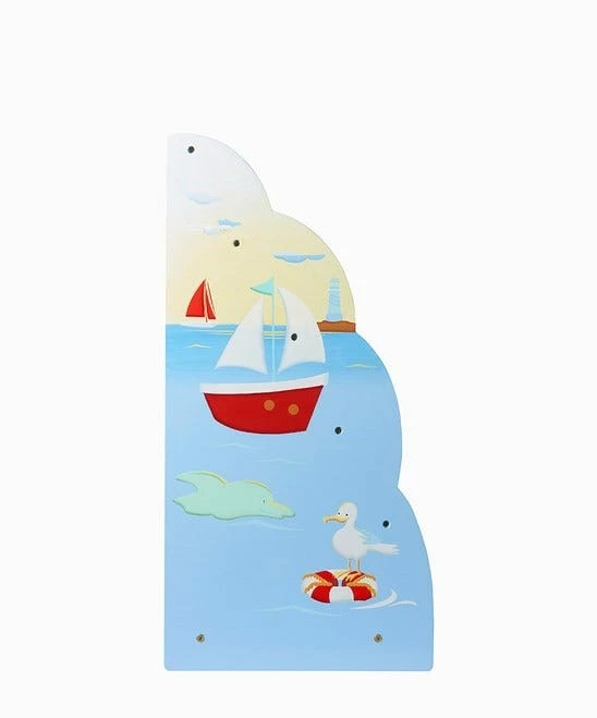 All aboard for a nautical adventure with the Sailing furniture set! This collection features shades of sea, sky, and sandy beaches–decorated with images of cheerful crabs, diving dolphins, soaring seagulls, and sailboats at full mast. This free-standing book browser is perfect for storing books and magazines at a height accessible to younger children. Deep storage pockets are canvas for easy cleaning. Ideal for the bedroom or playroom. Adult assembly required. 22″W x 12″D x 24″H