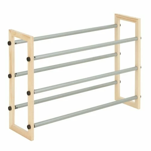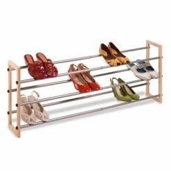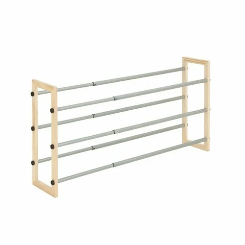 Honey-Can-Do SHO-01372 3-Tier Expandable Stackable Shoe Rack, Metal and Wood. Â Customize your shoe storage with this versatile 3-tier shoe rack. As your shoe collection grows, the rack expands from 25 inches to 46 inches wide. The sturdy metal and wood frame is rust-resistant and coordinates nicely with any decor. Some assembly required.