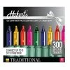 (2) 150-light sets with end connector. Features 27 drops per set, 15.8 feet lighted length, and 22 feet total length. 7/ /6/7/ /6/7/ /5 per 50 lights. Ideal for indoor or outdoor use. Steady burn or 2-way flashing option. 16 inch lead in, 3 inch lead out, 3.5 inch spacing between drops, and 2.75 inch spacing between bulbs.