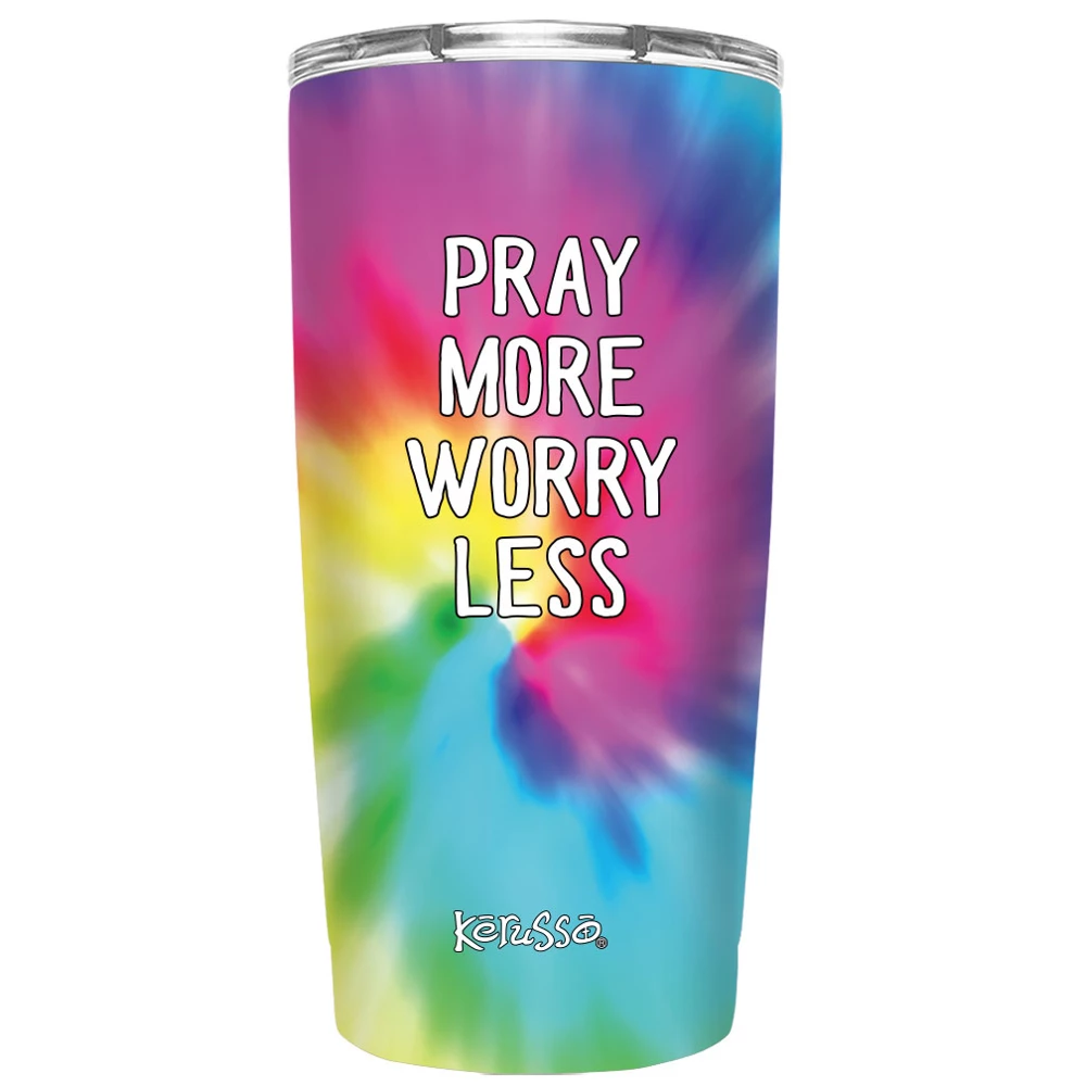 What has worry ever done for you? Give it all to God with every sip from this bright “Pray More” 20 oz. Dual Wall Stainless Steel Mug in Tie Dye by Kerusso®. God’s Word, the Bible, tells us we can’t add a single hour to our lives by worrying. On the other hand, we waste both time and energy when we let anxious thoughts take over, instead of handing our concerns to the Lord in prayer. This handy sweat-free tumbler keeps drinks piping hot or ice-cold for hours. It’s a practical vessel for home, work, or the car. Imagine how different our days would be if instead of stressing out, we chose to praise the name of Jesus, no matter what? God is there, He knows what is bringing you down, and He is waiting to hear from you. Lift up your concerns in prayer, and let God take it from there!