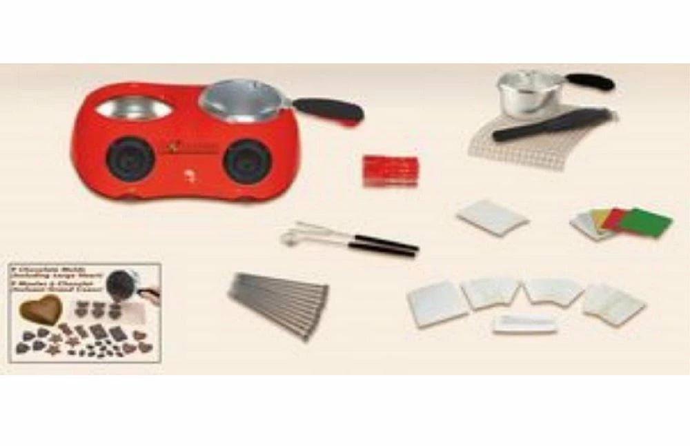 With the convenient temperature control, you choose the heat level. Turn it on high to melt chocolate or cheese, or keep it on the lower setting to stop chocolate or cheese from hardening. The Deluxe Chocolatiere also comes with 12 delicious recipes to help you get started, and 9 molds to help you make your very own chocolate candies.