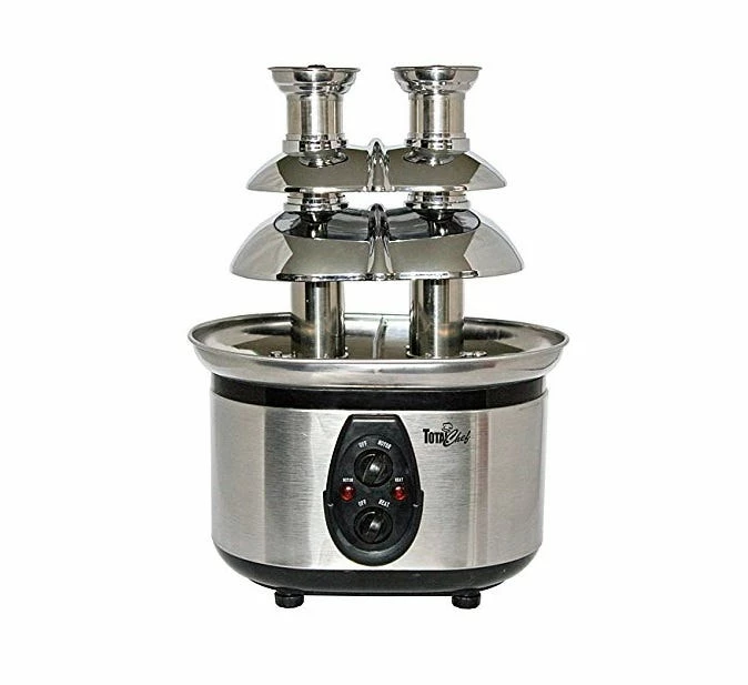 Does a waterfall of melted chocolate cascading down onto an awaiting strawberry sound appealing to you? Look no further, because the Total Chef Double Chocolate Fountain is the perfect addition to your next party. Your guests will love the experience of dipping strawberries, bananas, pineapple, or cake into the delightful chocolate waterfall that flows out of the fountain.
