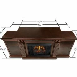 Based on a best selling favorite, the Ashley Entertainment Mantel features ample storage thanks to a drop down center glass door and dual side cabinets. Capable of safely supporting a television of 100 lbs. or less while adjustable shelving accommodate most electronics and other objects. The Vivid Flame Electric Firebox plugs into any standard outlet for convenient set up. The features include remote control, programmable thermostat, timer function, brightness settings and ultra bright Vivid Flame LED technology. Available in Dark Walnut and Dark Espresso finishes.