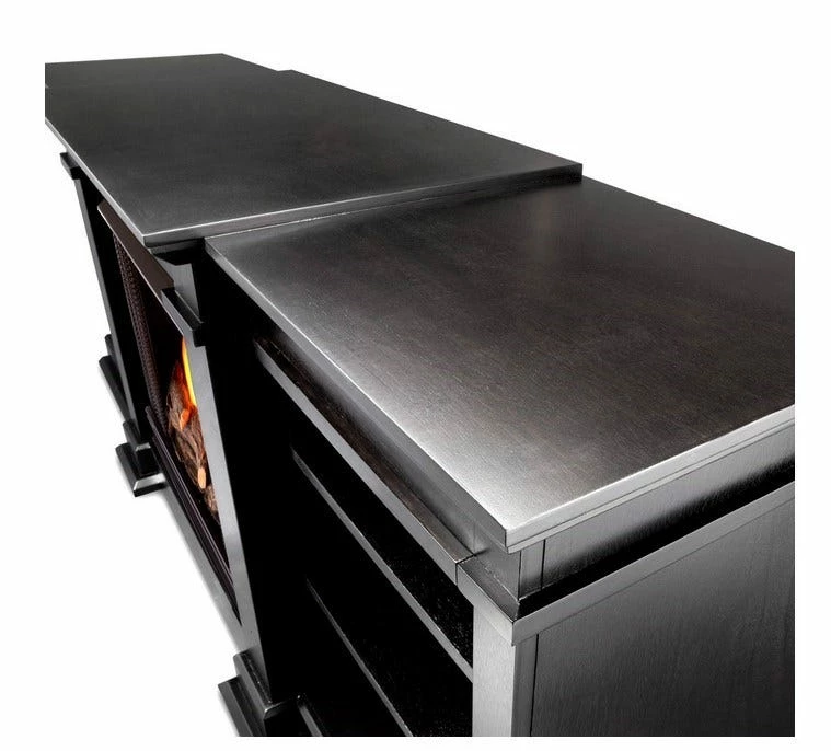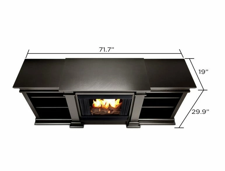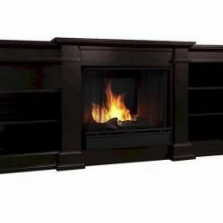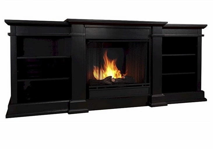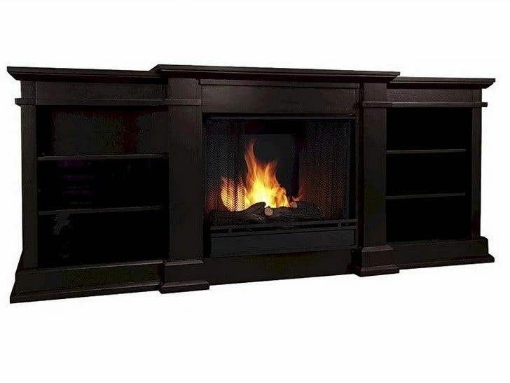 Enjoy the ambiance of a Real Flame fireplace, this substantial freestanding fireplace also doubles as an entertainment center. Available in dark walnut, black and white, this unit is able to hold a television of 100 lbs or less and has adjustable shelving to accommodate most electronics. Uses 13 oz. cans of Real Flame Gel Fuel.