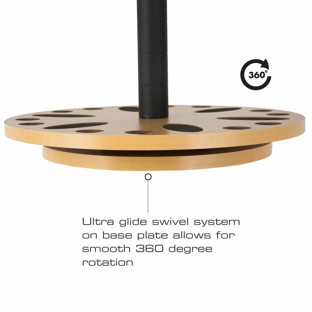 New Dual Rod Technology is off the hook! Musky, Marlin, Bluefin Tuna – big game fishing requires bigger fishing rods. The 24-Rod Spinning Rack allows you to store an entire collection, even those saltwater rods with tapers up to 1.25”! Water proof handle insets, 12 standard rubber freshwater rod clips, and 6 dual rod clips keep your poles in place, while the 360-degree Ultra Glide swivel system saves space by providing maximum storage in a compact design. This rod rack measures 14.75” x 31.5” with no tool assembly.