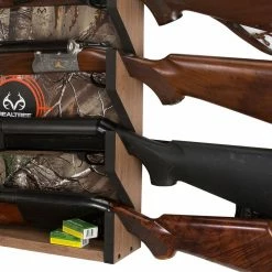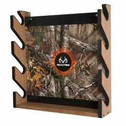 REALTREE does it again with this 4 gun wall rack! Full color Xtra camo pattern is eye catching to say the least. This solid performer will hold up to 4 rifles or shotguns securely with deep padded grooved slots. The sides of the gun rack are 1″ in thickness and will last a lifetime. As an added bonus there is a storage shelf at the base of the rack to hold your gun accessories. This REALTREE gun rack will look great in any home or cabin. The rack size is 20.8″ x 5″ x 21.5″.