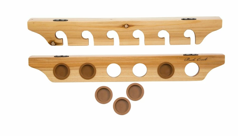 A reel expert can tackle anything – even organizing your equipment. Versatile and convenient, the 2-Piece Rod Ceiling wall mount from Rush Creek is a favorite of fishermen everywhere! Not only is it quick and easy to install, but you can also choose whether it will display fresh and saltwater rods (up to 6) in a vertical or horizontal position — allowing you to maximize your wall storage space. The rack size is 23.6″ x 3″.