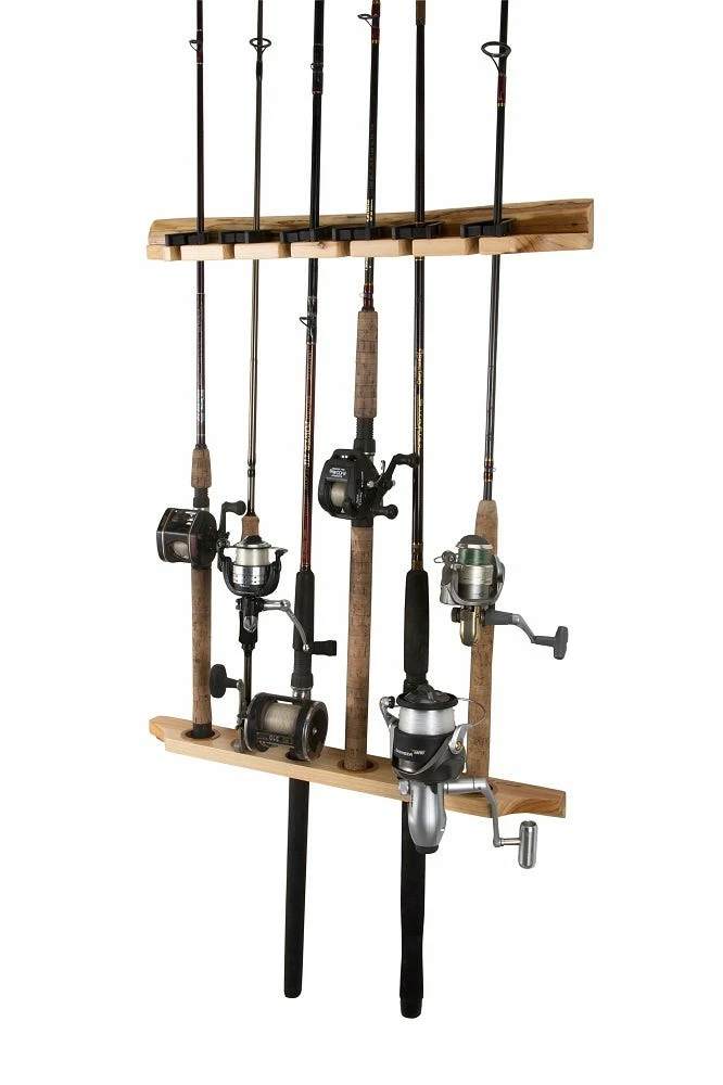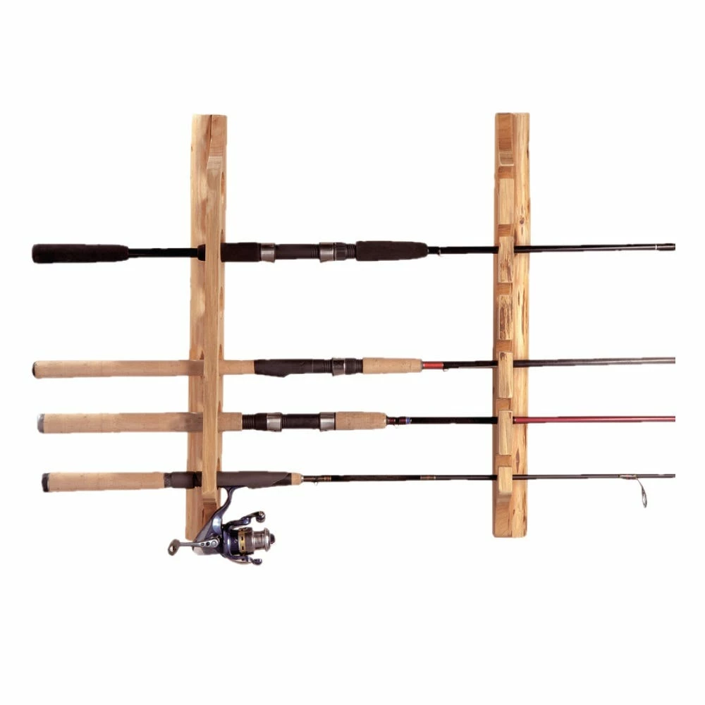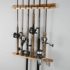 - Solid pine fishing rod rack displays up to 6 six