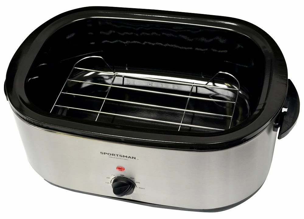 Free up space in the oven when cooking large meals with the Sportsman 18 Quart Roaster Oven. Cook large meals without heating up the kitchen during warm months. Use the Sportsman 18 Quart Roaster Oven for cooking and serving large families meals during holidays and reunions, potlucks, church groups and more.