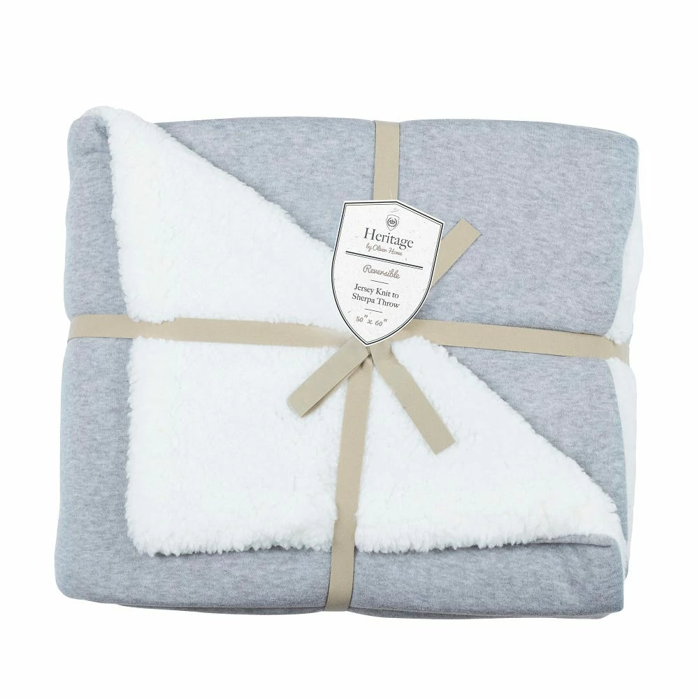 Sutton Heritage By Oliver Home Jersey Knit Reversible to Sherpa Throw Blanket –Â MAN-JRSH-GRY
