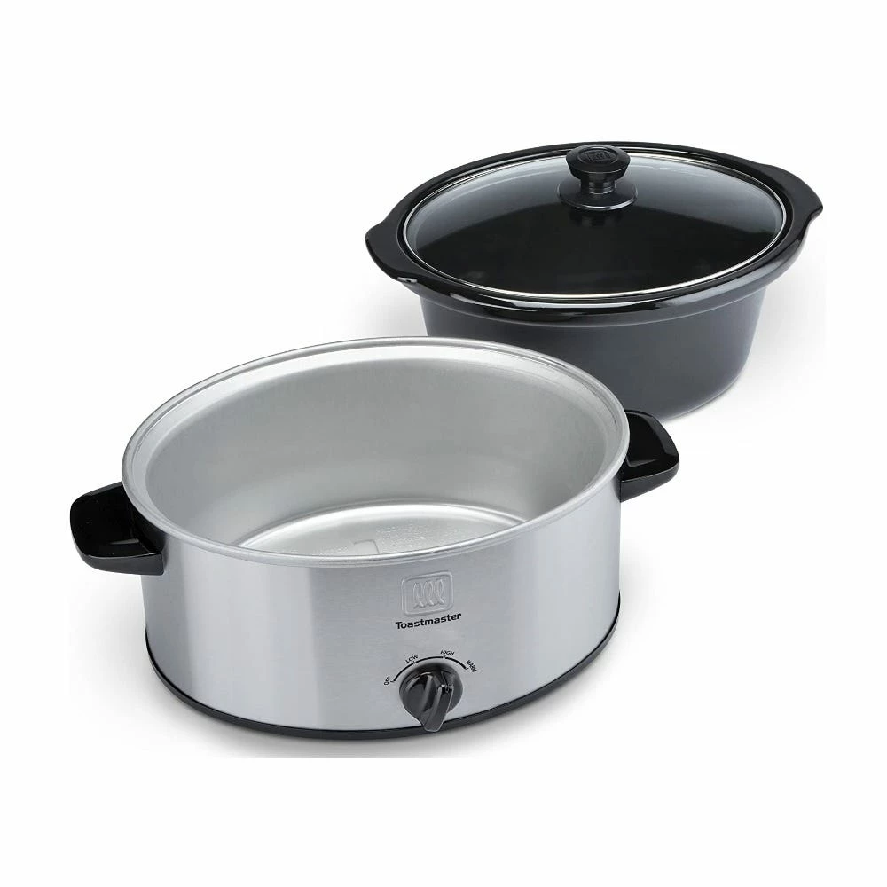 - 4-quart capacity slow cooker with stoneware insert, glass lid, and brushed stainless steel exterior