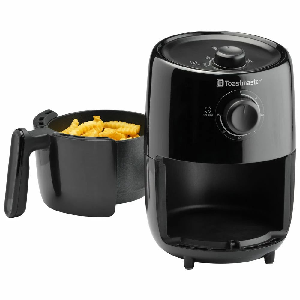 Make a crispy treat with the Toastmaster 2 Quart Air Fryer. It’s an easy way to make fried foods without the need for oil. This helps prevent messes in the kitchen and makes each meal healthier. Using rapid convection heat, cooking is even with a bit of crispiness. Perfect for French fries, chicken wings, veggies, kale chips and much more. It features a compact design to save counter space and make storage more convenient.