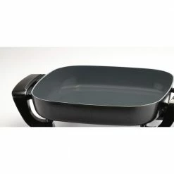 The Toastmaster 12″ Electric Skillet is the perfect, portable means for all of your browning, sautéing and cooking needs. The non-stick finish is the ideal choice in coatings. With 2″ high sidewalls, servings of meats and veggies can be cooked in a breeze. The adjustable temperature control ranges from a high searing, to a low simmer.Â