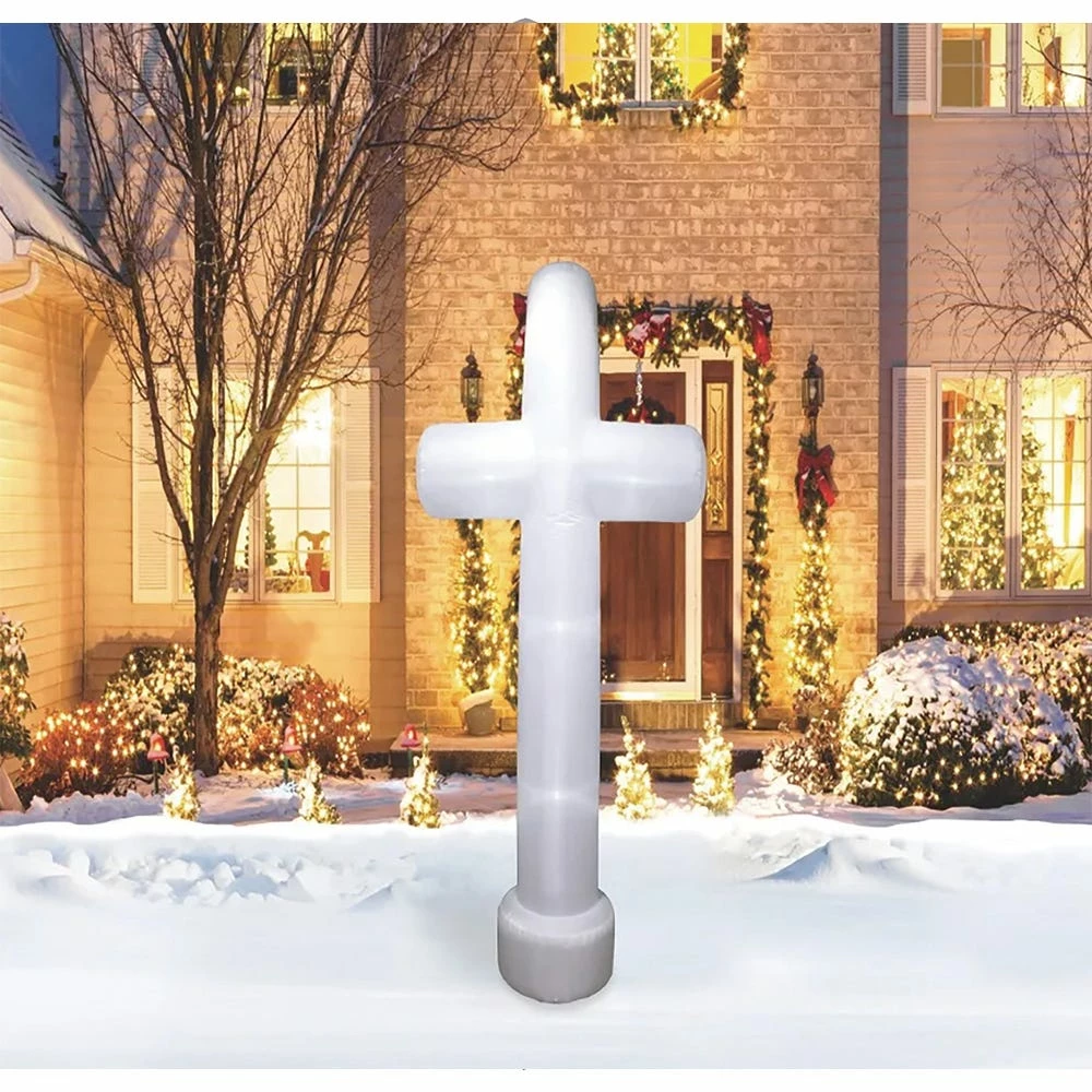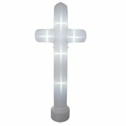 This cross stands 10′ Tall and is lighted For nighttime display. It comes with everything needed for setup and self inflates!! Just plug this inflatable cross and in a minute’s time it will be standing up to its full height, ready to delight all your neighbors and guests. Eye-catching bright pure white LED lights that make it look perfect every Holiday night! Certified for outdoors and uses only 12 volts, making it even safer.