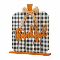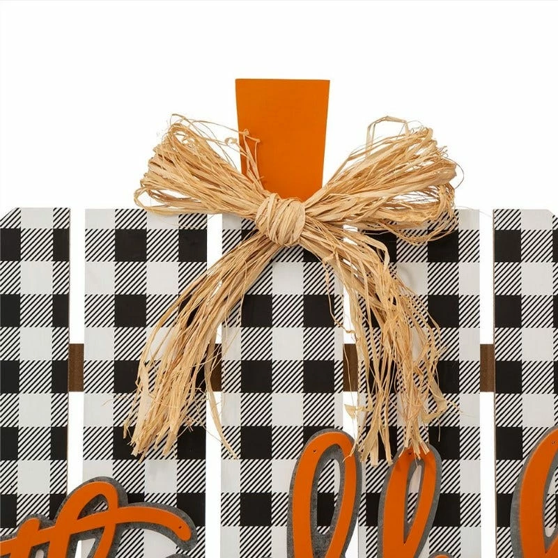 If you’re looking for a gorgeous autumn sign, look no further than this piece. Wood pumpkin with Thankful typical sign. Accented with a bow which is made of raffia. It features in black, white plaid, wooden slats made up a attractive pumpkin. Solid wood base for easy display. Size: 20.87″L X 3.94″W X 25″H