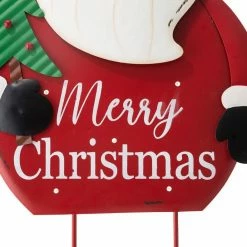 The metal yard stake features in a cute Santa who is taking a Christmas tree. Skilled screen phrase reading as Merry Christmas. It is LED lighting. Powered with 3 AA batteries (not included). The battery box is water proof, very safe display in the yard. Quick and easy installation lets you add a striking feature to your lawn in minutes.