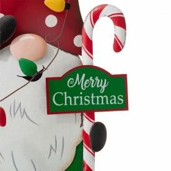 Add whimsical curb appeal to your front yard or kitchen counters with this Christmas themed garden gnome family. The gnomes are made from metal and feature red hats, long white beards, and different colored dress. In the front, there is a metal wire accented with bulb shape. They arrive with stakes that can be stuck into the ground, or you can hang them on your walls.