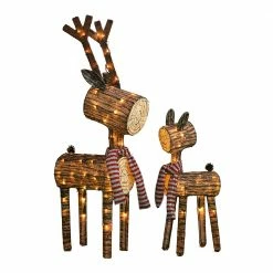 Turn your front yard into a peaceful woodland scene with these rustic log deer set. This charming 2-piece set includes a buck and a fawn with a total of 105 incandescent clear lights pre-attached to the natural brown frames. Simply secure with the included stakes for a lasting Christmas display. This is a great choice for indoor or outdoor use and can be counted on to bring Christmas cheer to your home season after season.Â