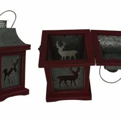 - The product features in wooden and galvanized metal material, style in reindeer cutout.