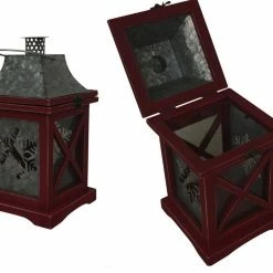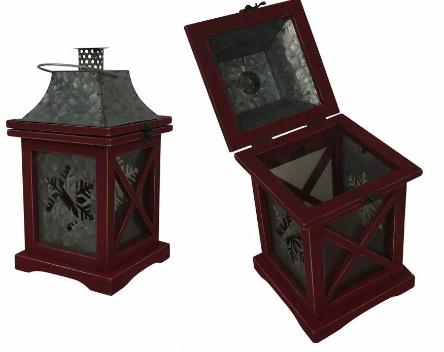 - The product features in wooden and galvanized metal material, style in snow flake cutout.