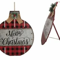 - The product features in wooden and covered with half galvanized metal and half red and black plaid fabric.
