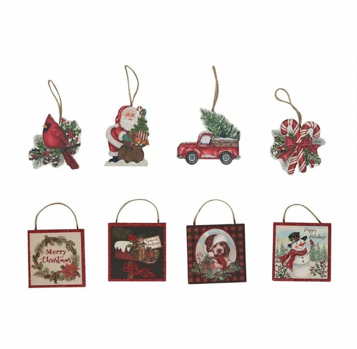 - Christmas tradional ornament is handmad and the material is wood with jute hanger.