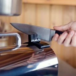 - Built-In Knife Sharpener for sharpening your favorite butcher knife