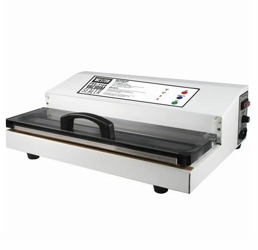 - Commercial-grade vacuum sealer with an extra large bar for sealing bags up to 15â wide