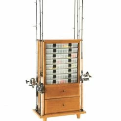 Organized Fishing 32 Rod Capacity Rolling Floor Rack, Oak Finish – PFR032 – Storage Furniture